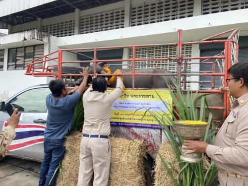 นายฐนัญญ์ภพ ดาราย นายอำเภอลำทะเมนชัย ประธานพิธีมอบโค-กระบือพระราชทาน ด้วยพระบาทสมเด็จพระเจ้าอยู่หัวฯ ทรงมีพระราชประสงค์ปล่อยชีวิตโค-กระบือ เพื่ออุทิศบุญกุศล และเสริมความเป็นสิริมงคล และพระราชทานโค จำนวน 2 ตัว เป็นเพศผู้ จำนวน 1 ตัว เพศเมีย จำนวน 1 ตัว นำมาให้ความช่วยเหลือเกษตรกรในพื้นที่อำเภอลำทะเมนชัย จังหวัดนครราชสีมา จำนวน 2 ราย ได้แก่