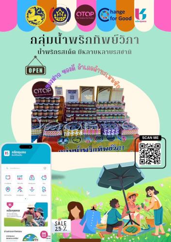 คือกลุ่มOTOP กลุ่มน้ำพริกทิพย์วิภา น้ำพริกรสชาติ เด็ด จัดจ้าน มีหลายหลายรสชาติ ให้เลือกช้อปเลือกซื้อ